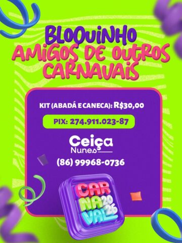 Com o objetivo de proporcionar alegria e resgatar o carnaval como antigamente em Valença do Piauí, a Valenciana Ceiça Nunes e amigos criaram o Bloquinho Amigos de Outros Carnavais que reunirá musicas como marchinhas, sambas e muita diversão que irá percorrer no dia 7 de fevereiro diversas ruas de Valença, levando alegria aos foliões, e marcando oficialmente abertura das festas de momo da nossa em cidade. A iniciativa da criação do bloquinho já ganhou grande repercussão na cidade, reunindo dezenas de foliões entre famílias e amigos que já se preparam para esse grande momento de alegria e diversão.
