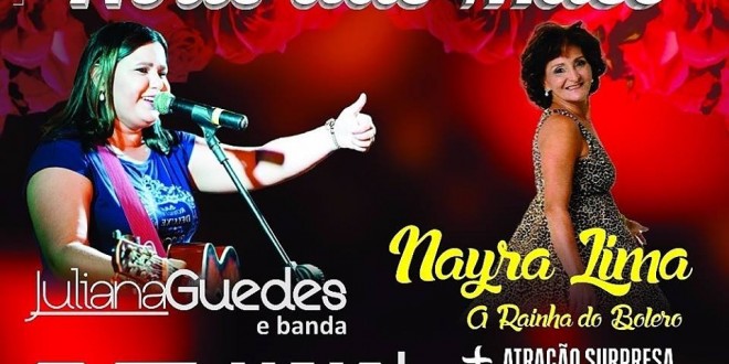 Na noite do dia 07 de maio no COLISEU CASA DE SHOWS E EVENTOS se transformará num espaço dedicado especialmente para as mães, com decoração temática, brindes e duas grandes atrações; Nayra Lima a rainha do Bolero e Juliana Guedes irão animar esta noite tão especiais que é as nossas queridas mamães.